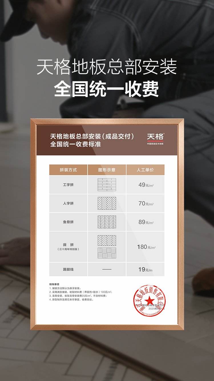 讓服務(wù)價值更客觀|天格地板公布總部安裝全國統(tǒng)一收費(fèi)標(biāo)準(zhǔn)